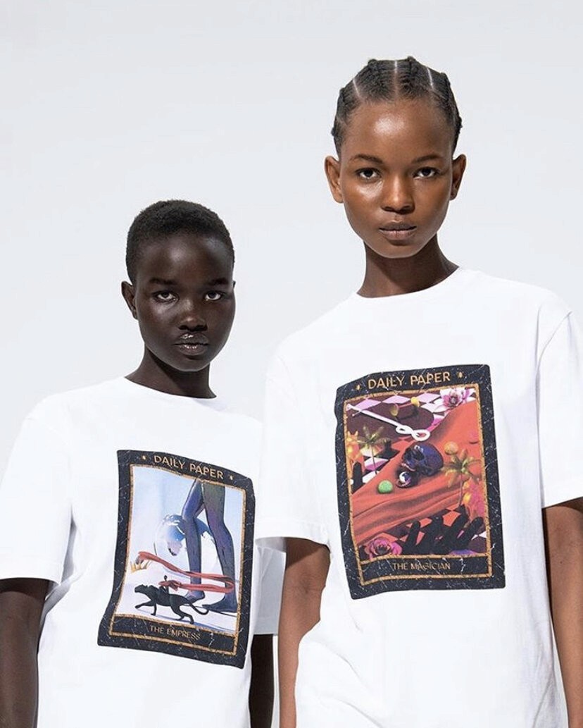 Amsterdam-based, African-owned streetwear brand, Daily Paper has released a new limited edition capsule collection in collaboration with Ghanaian visual artist David Alabo. The Tarot Card collection of high end t-shirts is part of the brand's Spring/Summer 2020 collection. Each t-shirt features a unique design by Alabo "highlighting an Afro-Surrealism tarot card providing insight and guidance through symbolism and spiritual wisdom," according to a press release from Daily Paper. The designs reflect Alabo's artistic vision of using elements of fantasy and mysticism to critique African society.